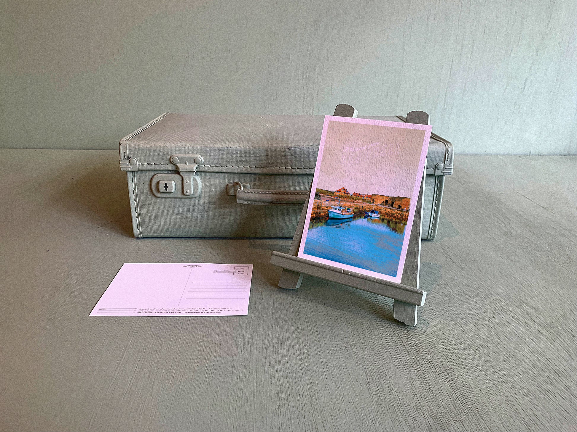 NOSTALGIC LANDSCAPE-INSPIRED ARTWORK, PRINTED ONTO THICK TEXTURED WATERCOLOUR CARD, WITH POSTCARD DESIGN ON THE REVERSE.