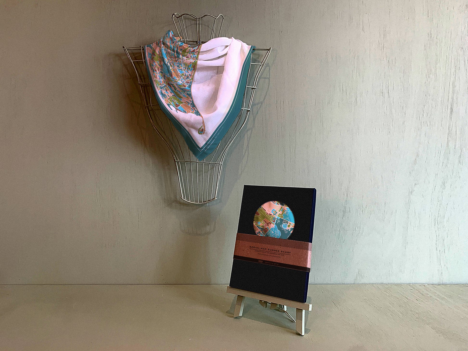COLOURFUL AERIAL MAP DESIGN, DIGITALLY PRINTED ONTO LIGHTWEIGHT RECYCLED POLYESTER FABRIC, THEN PACKAGED IN A BEAUTIFUL BLACK PRESENTATION BOX.