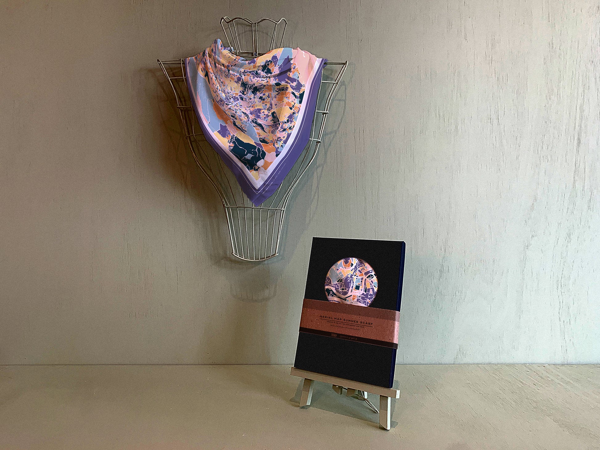 COLOURFUL AERIAL MAP DESIGN, DIGITALLY PRINTED ONTO LIGHTWEIGHT RECYCLED POLYESTER FABRIC, THEN PACKAGED IN A BEAUTIFUL BLACK PRESENTATION BOX.