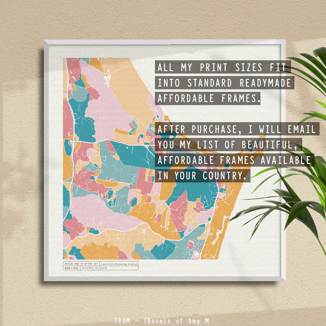 All of my prints are sized to fit into readymade affordable frames available in your country. If you purchase your art print unframed, I will email you my DIY Framing Guide, so that you can buy frames (locally to you) that fit perfectly with these prints.