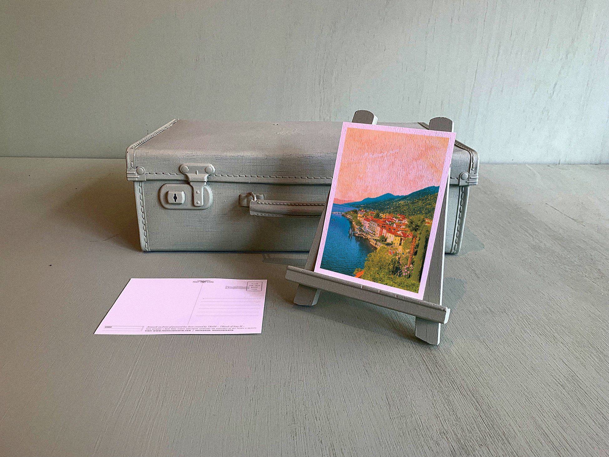 NOSTALGIC LANDSCAPE-INSPIRED ARTWORK, PRINTED ONTO THICK TEXTURED WATERCOLOUR CARD, WITH POSTCARD DESIGN ON THE REVERSE.
