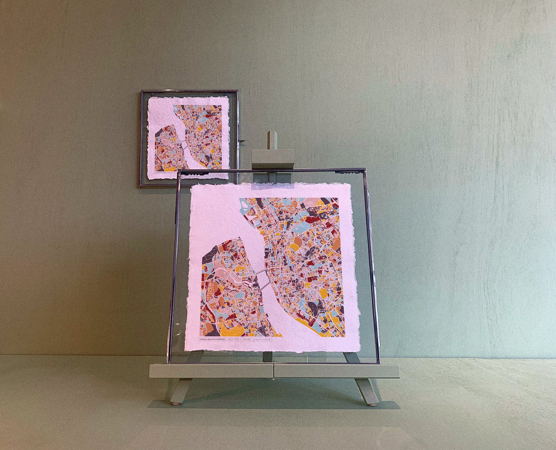 COLOURFUL AERIAL MAP DESIGN, GICLEE-PRINTED ONTO HANDMADE RECYCLED COTTON RAG PAPER, FOR A UNIQUE VINTAGE LOOK.