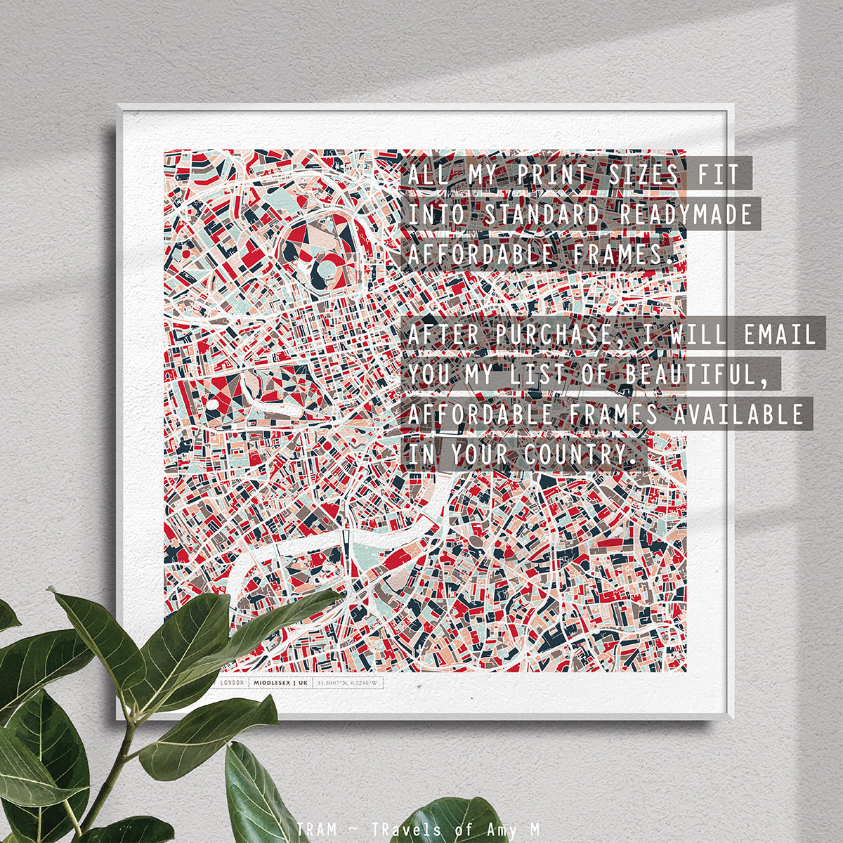 All of my prints are sized to fit into readymade affordable frames available in your country. If you purchase your art print unframed, I will email you my DIY Framing Guide, so that you can buy frames (locally to you) that fit perfectly with these prints.