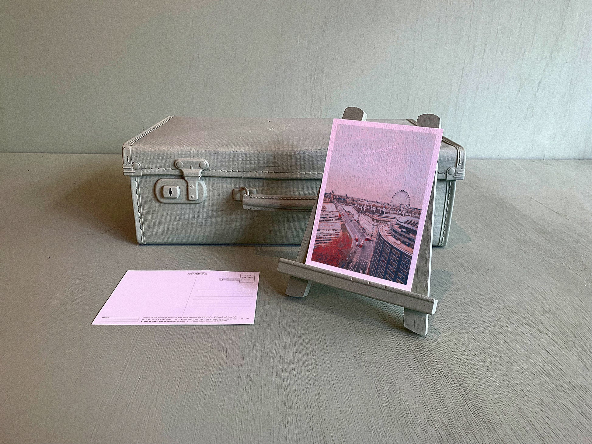 NOSTALGIC LANDSCAPE-INSPIRED ARTWORK, PRINTED ONTO THICK TEXTURED WATERCOLOUR CARD, WITH POSTCARD DESIGN ON THE REVERSE.