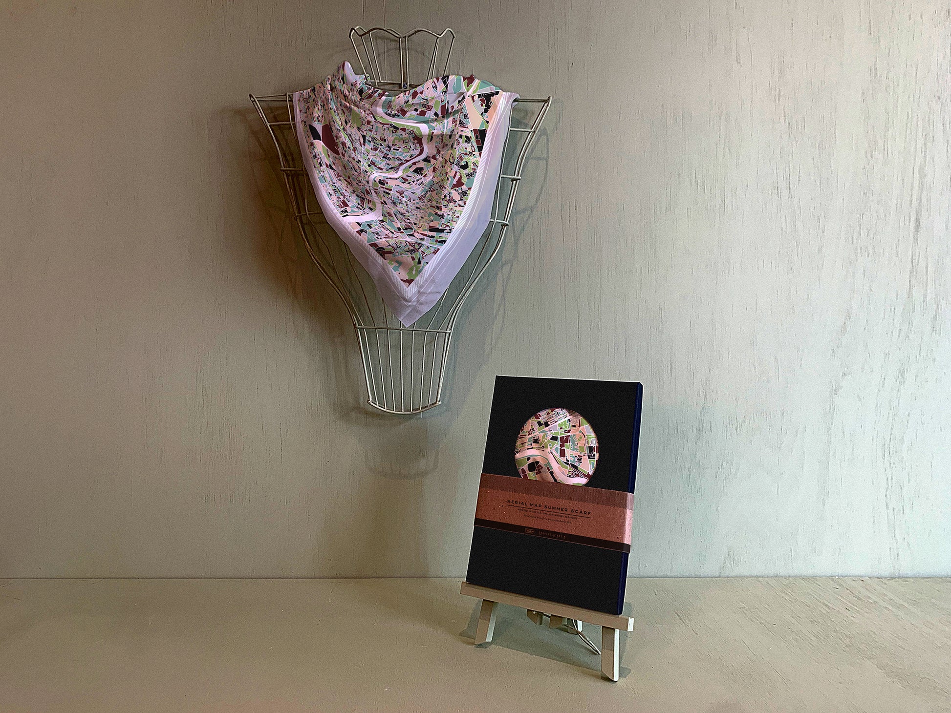COLOURFUL AERIAL MAP DESIGN, DIGITALLY PRINTED ONTO LIGHTWEIGHT RECYCLED POLYESTER FABRIC, THEN PACKAGED IN A BEAUTIFUL BLACK PRESENTATION BOX.