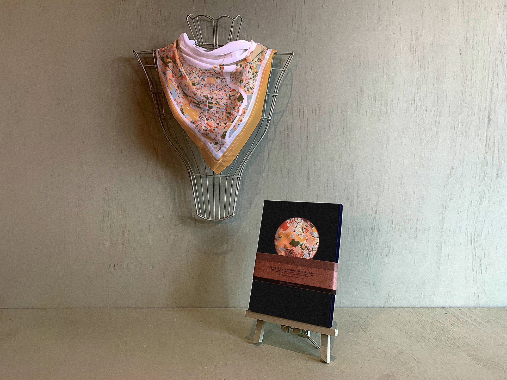 COLOURFUL AERIAL MAP DESIGN, DIGITALLY PRINTED ONTO LIGHTWEIGHT RECYCLED POLYESTER FABRIC, THEN PACKAGED IN A BEAUTIFUL BLACK PRESENTATION BOX.