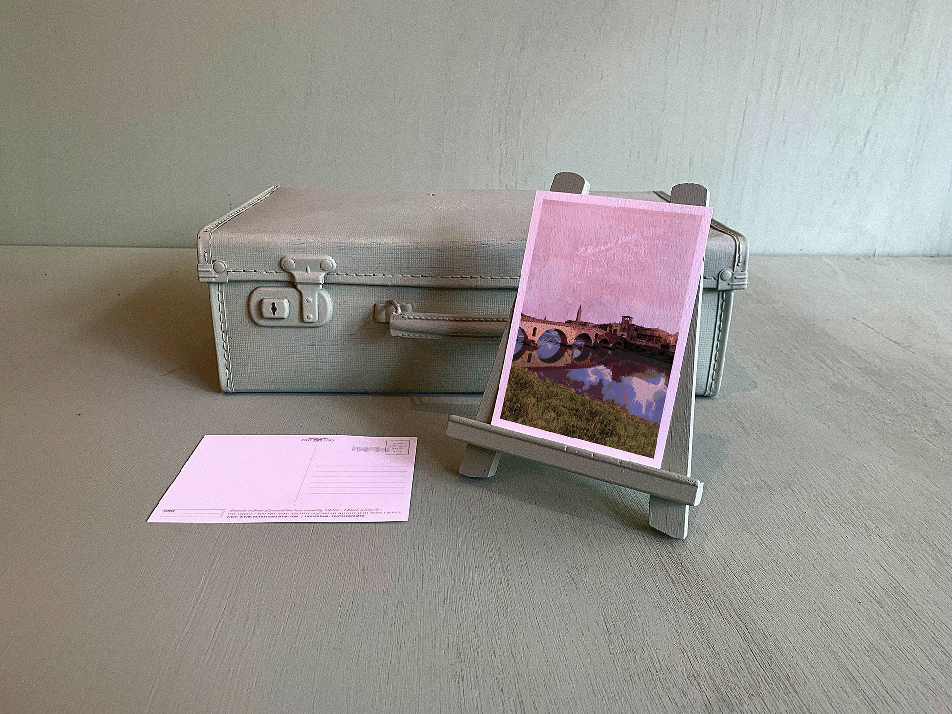 NOSTALGIC LANDSCAPE-INSPIRED ARTWORK, PRINTED ONTO THICK TEXTURED WATERCOLOUR CARD, WITH POSTCARD DESIGN ON THE REVERSE.
